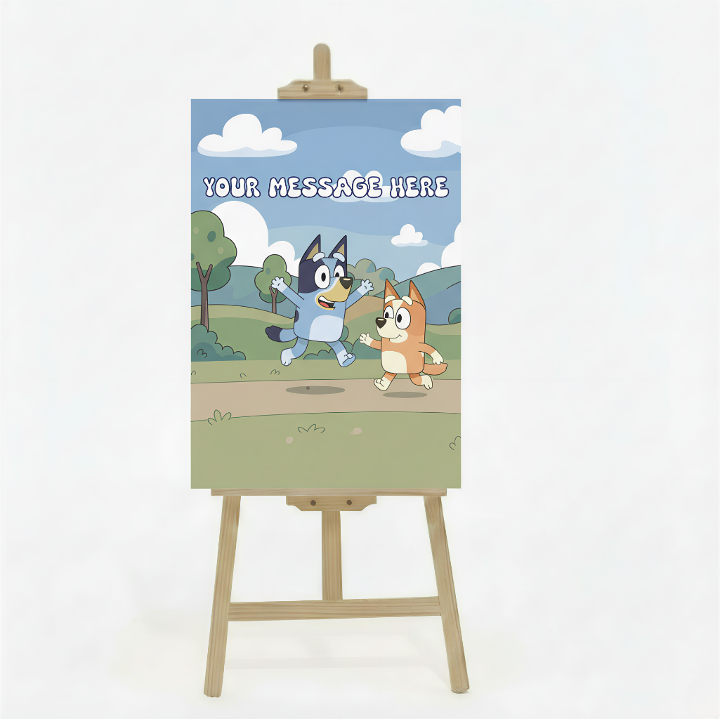"لوحة ترحيب مبهجة وملونة تضيف لمسة حيوية إلى أي احتفال!مثالية لاستقبال الضيوف في أعياد الميلاد، الحفلات، والمناسبات الخاصة. تتميز بتصميم مطبوع بألوان جميلة ومساحة لكتابة رسالتك الخاصة. تأتي مع حامل خشبي يثبتها بشكل آمن ويسهّل عرضها في أي مكان."