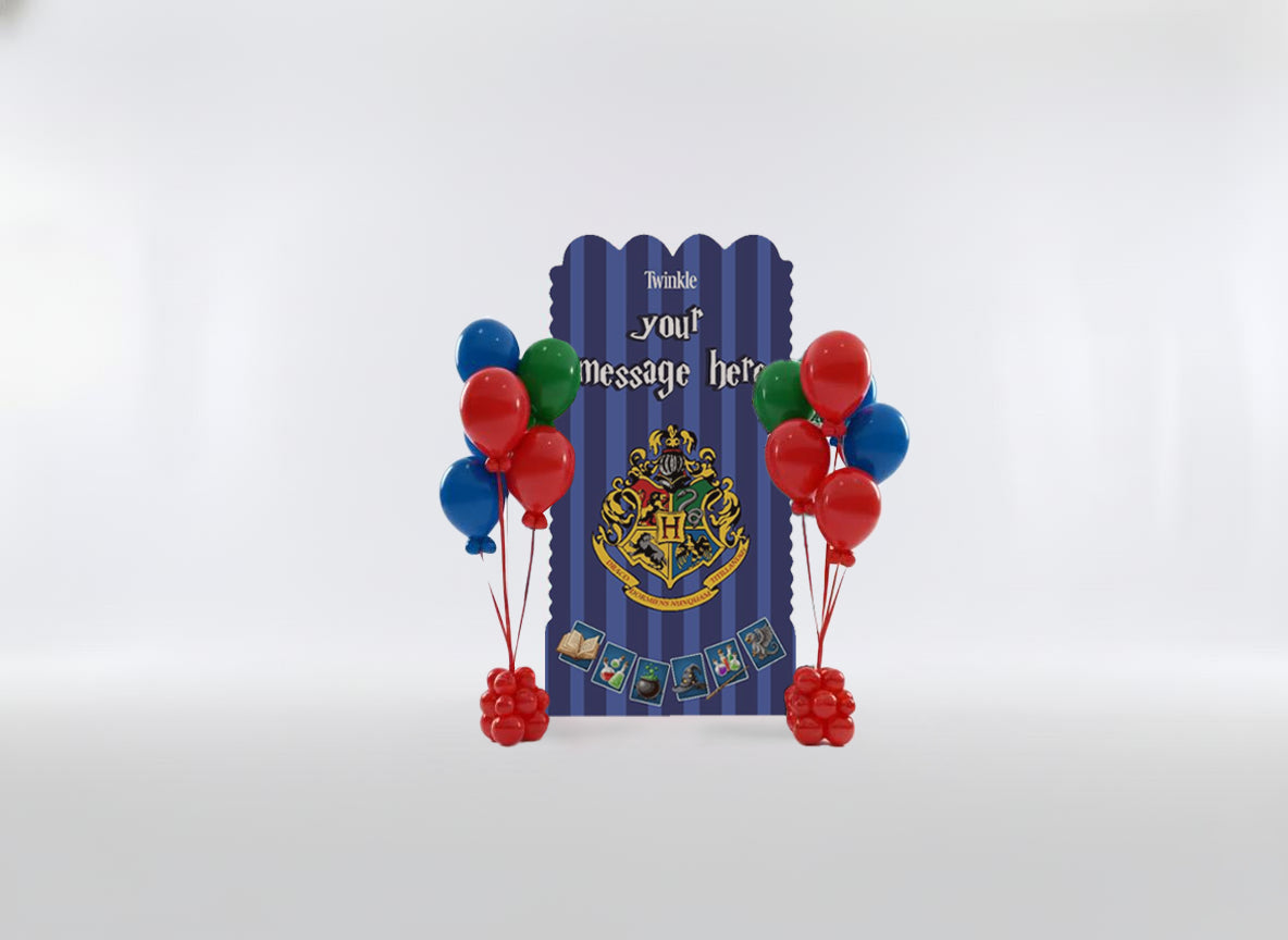 خلفية احتفالية فاخرة مكونة من لوحة واحدة بتصميم أنيق، تتوسطها عبارة مطبوعة تمنحها لمسة راقية، مع باقتين من البالونات المتناسقة لتكمل المشهد بجمال. مثالية لأعياد الميلاد، التهاني، حفلات التخرج والمناسبات الخاصة.