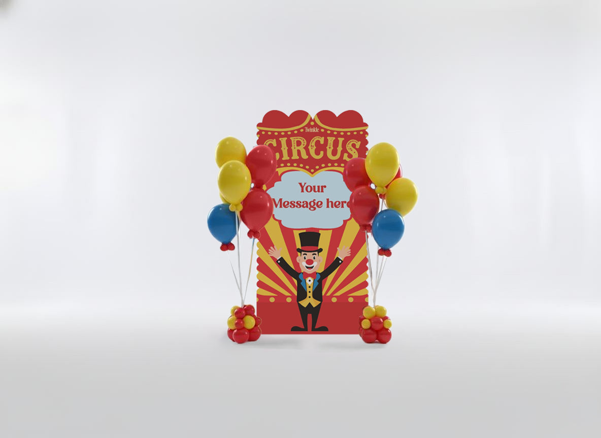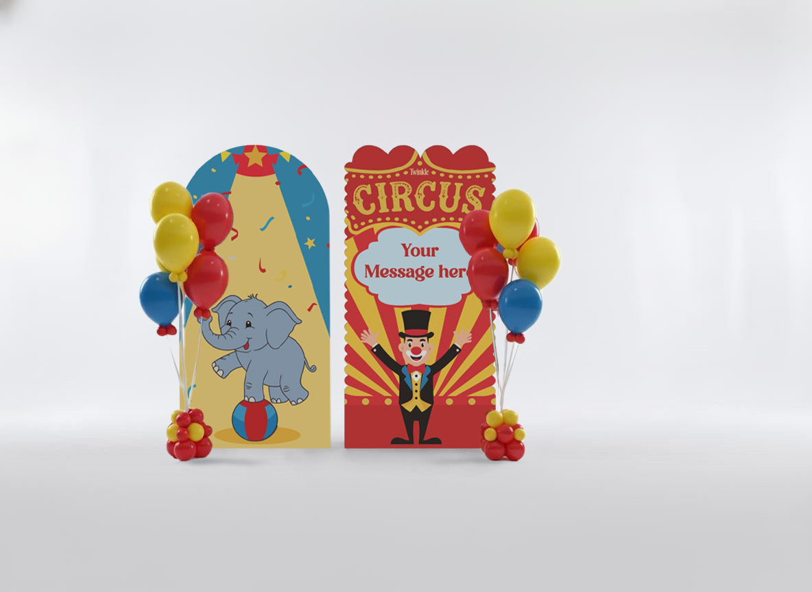 خلفية احتفالية فاخرة مكونة من لوحتين بتصميم أنيق، تتوسطها عبارة مطبوعة تمنحها لمسة راقية، مع باقتين من البالونات المتناسقة لتكمل المشهد بجمال. مثالية لأعياد الميلاد، التهاني، حفلات التخرج والمناسبات الخاصة.