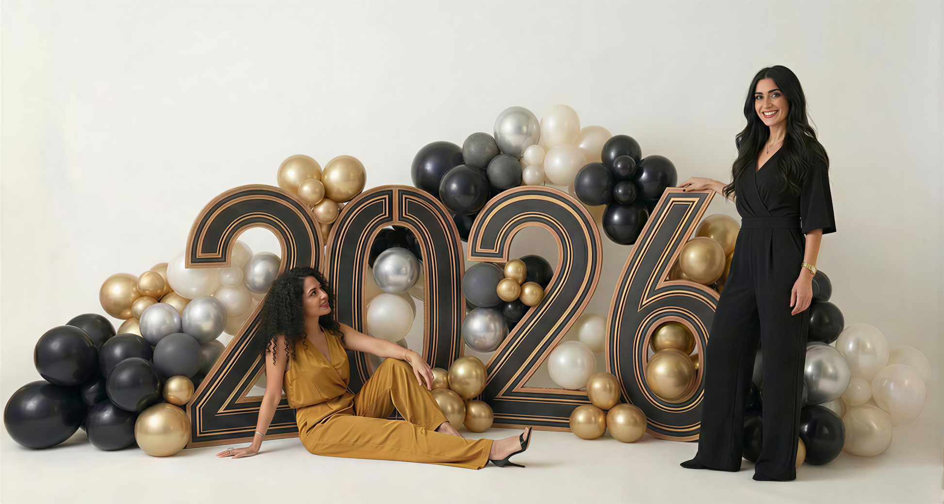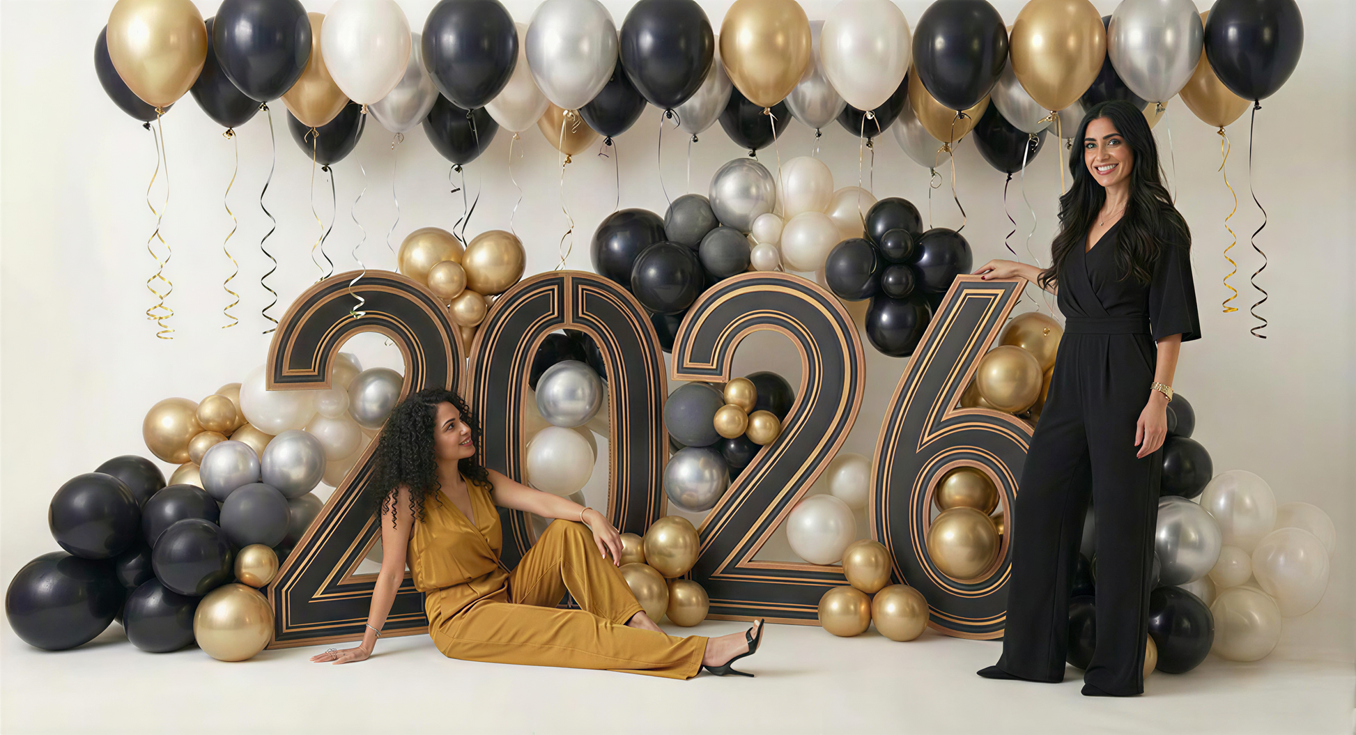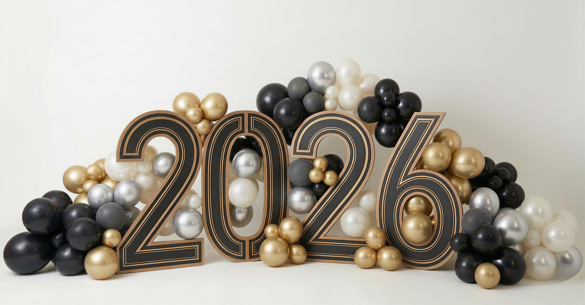 تنسيق احتفالي للسنة الجديدة يضم أرقام ٢٠٢٦ بتصميم لافت، مثالي للاحتفال بالسنة الجديدة وصناعة لحظة جميلة وجاهزة للتصوير