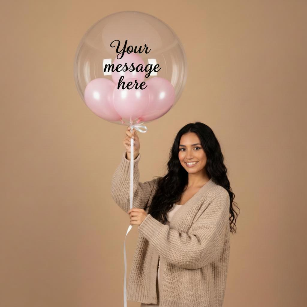 Celebrate in style with our elegant bubble balloon filled with beautifully coordinated mini balloons. Each piece can be customized with your personal message, making it perfect for birthdays, anniversaries, or special surprises. Choose between black or white font to match your preferred look. Delivered inflated and ready to impress, it’s the perfect statement piece for any celebration.